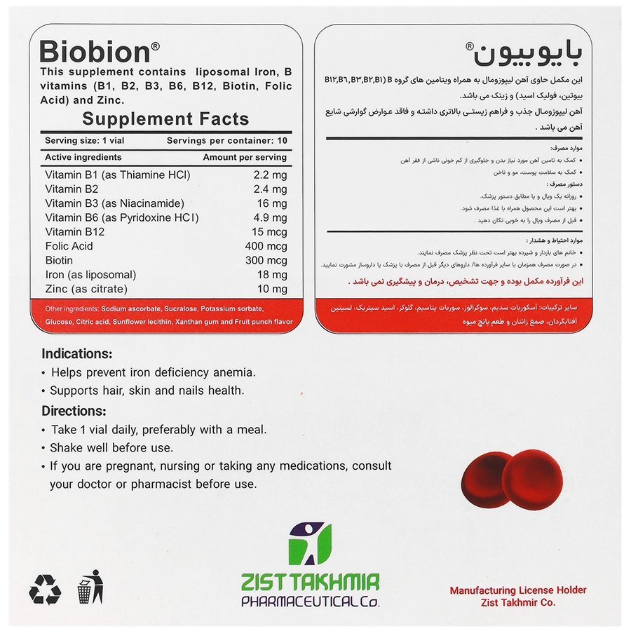 حاوی آهن لیپوزومال به همراه ویتامین های گروه B(B1 ،B2 ،B3 ،B6 ،B12 بیوتین، فولیک اسید)