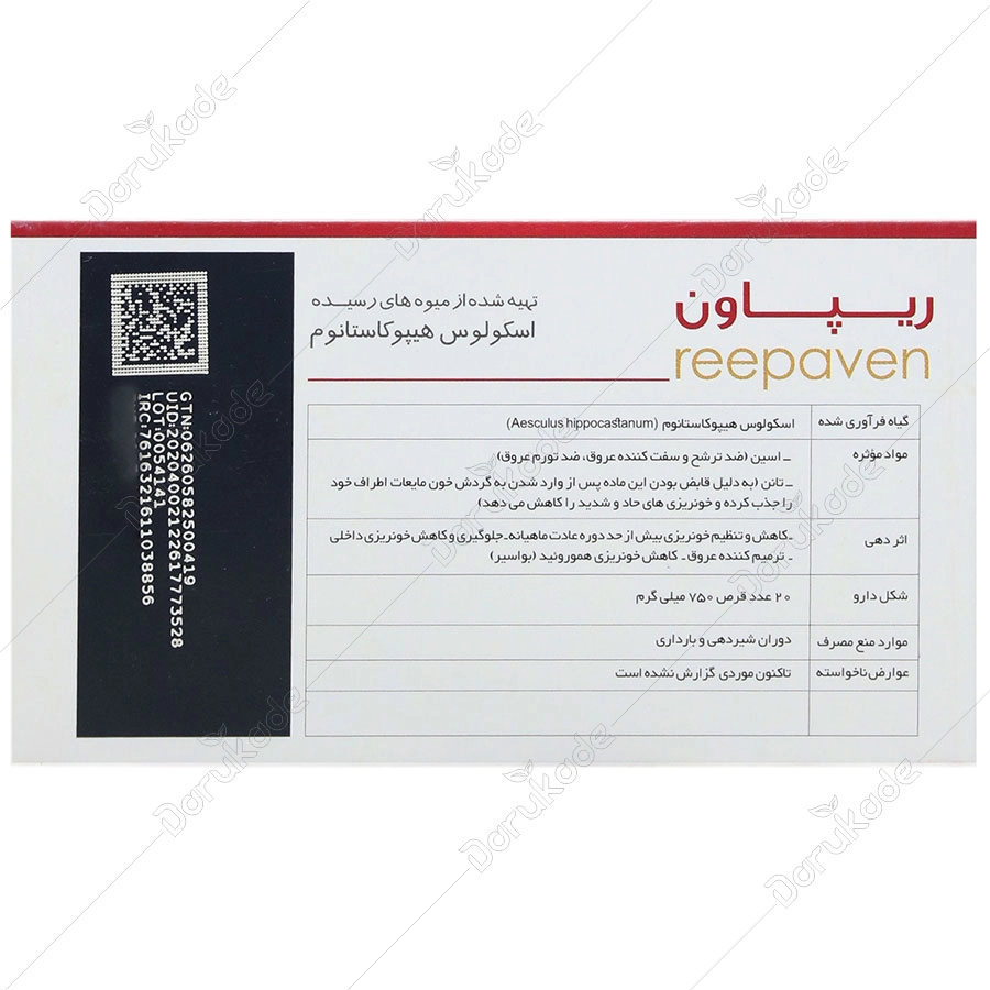 حاوی 750 میلی گرم پودر عصاره خشک هیپوکاستانوم یا شاه بلوط هندی معادل 50 میلی گرم آسین