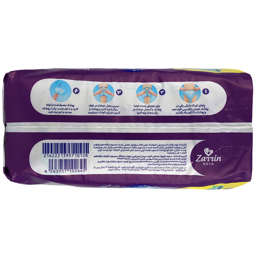 پوشک مصرفشده را لوله کنید و بانوارچسب پشت پوشک را ببندید و دور بیندازید.