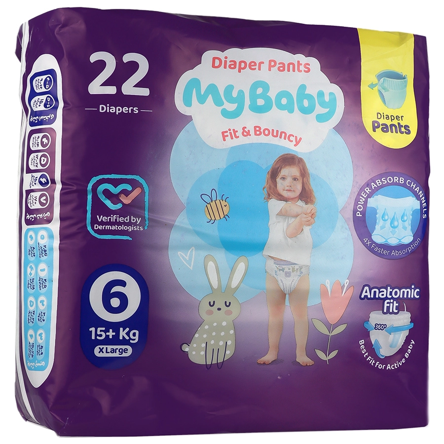 پاهای کودک را یکی یکی در پوشک شورتی مایبیبی قرار دهید و پوشک را تا کمر بالا بکشید.