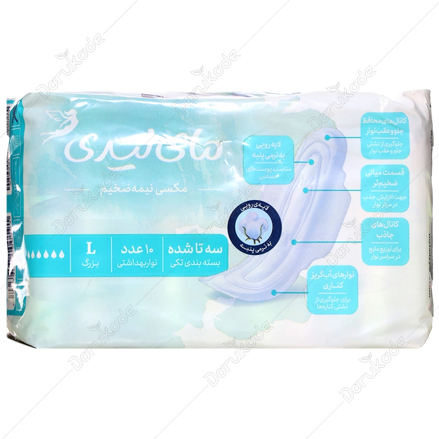نوار بهداشتی بالدار بزرگ مای لیدی، دارای لایه رویی به نرمی پنبه مناسب پوست های حساس می باشد. این پد نیمه ضخیم بوده و حاوی پودر جاذب با قدرت جذب خیلی خیلی زیاد می باشد.
