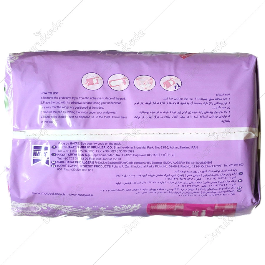 1- لایه محافظ سطح چسبنده را از روی نوار بهداشتی جدا کنید. 2- نوار بهداشتی را از طرف چسبنده آن به نحوی که باله ها در کناره ها قرار گیرند ، روی لباس زیر خود بگذارید. 3- باله های نوار بهداشتی را به طرف زیر لباس زیر خود تا کرده، به دو طرف بچسبانید.