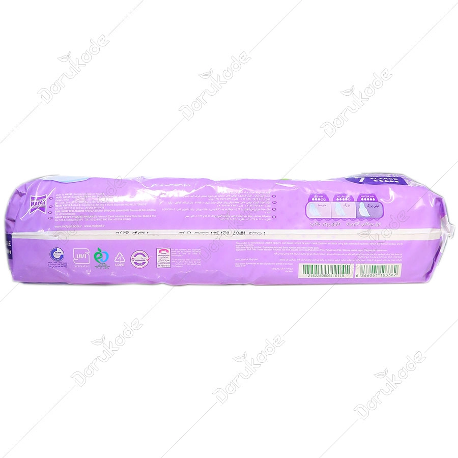 1- لایه محافظ سطح چسبنده را از روی نوار بهداشتی جدا کنید 2- نوار بهداشتی را از طرف چسبنده آن به نحوی که باله ها در کناره ها قرار گیرند ، روی لباس زیر خود بگذارید 3- باله های نوار بهداشتی را به طرف زیر لباس زیر خود تا کرده ، به دو طرف بچسبانید