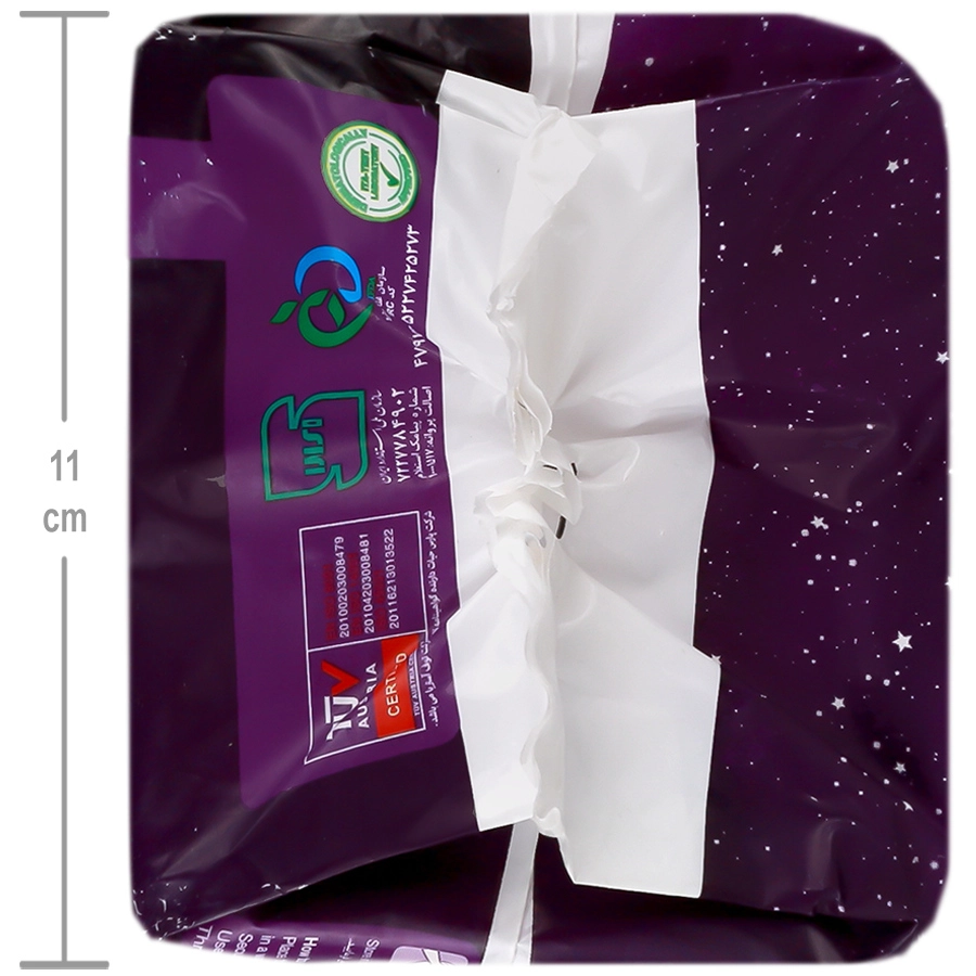2- نوار بهداشتی را از طرف چسبنده آن به نحوی که باله ها در کناره ها قرار گیرند، روی لباس زیر خود بگذارید.