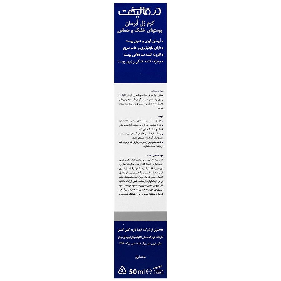 شرکت کیمیا فارمد گیتی گستر پس از سال ها تحقیق و کسب تجربه در زمینه فرمولاسیون های پیشرفته و با همکاری دو کمپانی بزرگ فرانسوی موفق به تولید کرم ژل آبرسان پوست های خشک و حساس گردیده است.