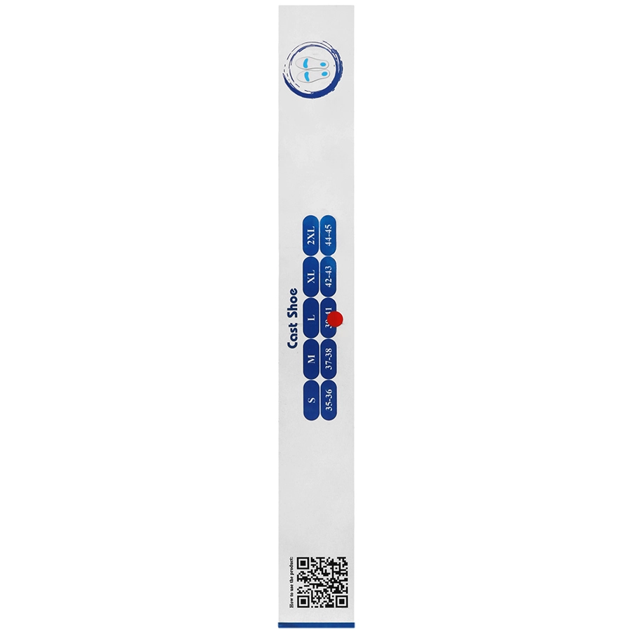 این کفش از یک کفی مخصوص فومی ساخته شده که به وسیله ی دو چسب محکم، سفت می شود و مانع از کثیف شدن گچ و ضربه خوردن به پای فرد آسیب دیده می شود.