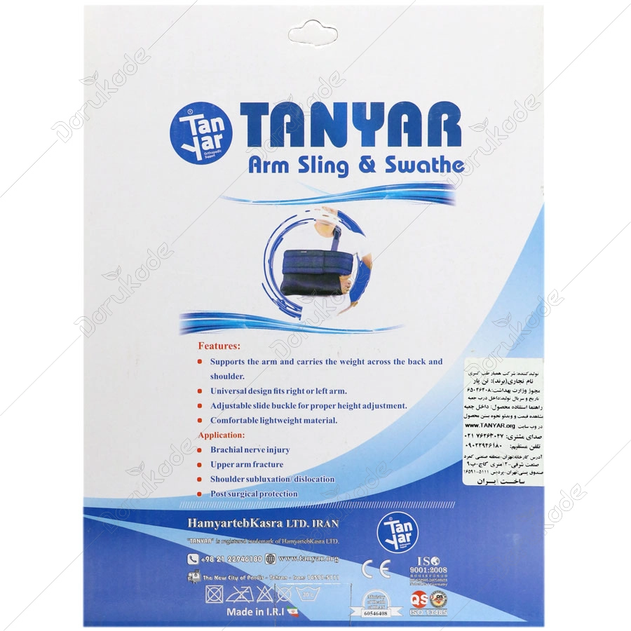 ساعد را درون اسلینگ قرار دهید. استرپ را بالای شانه بکشید. انتهای استرپ را از درون حلقه بگذرانید. طول استرپ شانه ای را تنظیم کنید تا اینکه مفصل آرنج در زاویه 90 درجه استراحت کند، سپس ولکرو را محکم ببندید. در محصول آویز دست با بازوبند الحاقی، بازوبند را مطابق تصویر جعبه به شکلی ببندید که مفصل شانه را کاملا بی حرکت کند. - مدت زمان استفاده از محصول: در صورتی که با تجویز پزشک ارتوپد از این ارتز استفاده مینمایید، با توجه به نظر ایشان عمل نمایید. در غیر این صورت از این محصول به مدت حداقل 8 هفته معادل 2 ماه استفاده نمایید.
