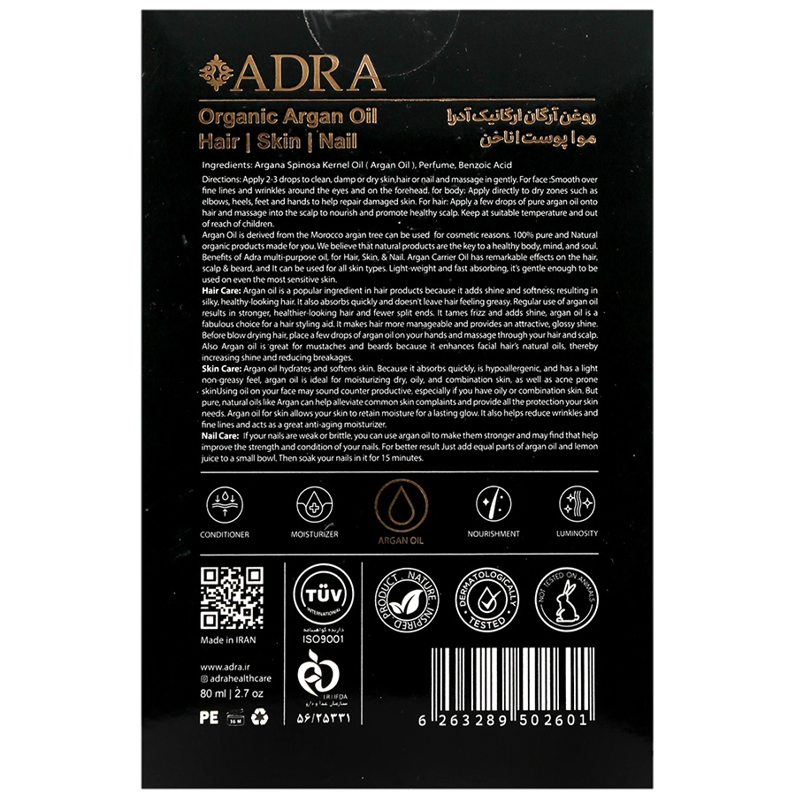 مراقبت از مو: آرگان یک روغن محبوب در محصولات مو است زیرا باعث درخشندگی و نرمی آن می شود. درنتیجه موها ابریشمی و سالم به نظر می رسند. همچنین به سرعت جذب می شود و احساس چربی به موها نمی دهد. استفاده منظم از روغن آرگان باعث می شود موها قوی تر، سالم تر به نظر برسند و نوک ها شکاف کمتری داشته باشند. وز مو را بر طرف می کند و درخشندگی می بخشد. روغن آرگان یک انتخاب فوق العاده برای حالت دهندگی به مو است. موها را قابل کنترل تر می کند، درخشش جذاب و براقی را به موها می بخشد. قبل از سشوار کردن موها، چند قطره روغن آرگان را روی دستان خود بریزید و روی موها و پوست سر خود ماساژ دهید. همچنین روغن آرگان برای سبیل و ریش عالی است زیرا روغن طبیعی موهای صورت را تقویت می کند و در نتیجه باعث افزایش درخشندگی و کاهش شکستگی می شود.