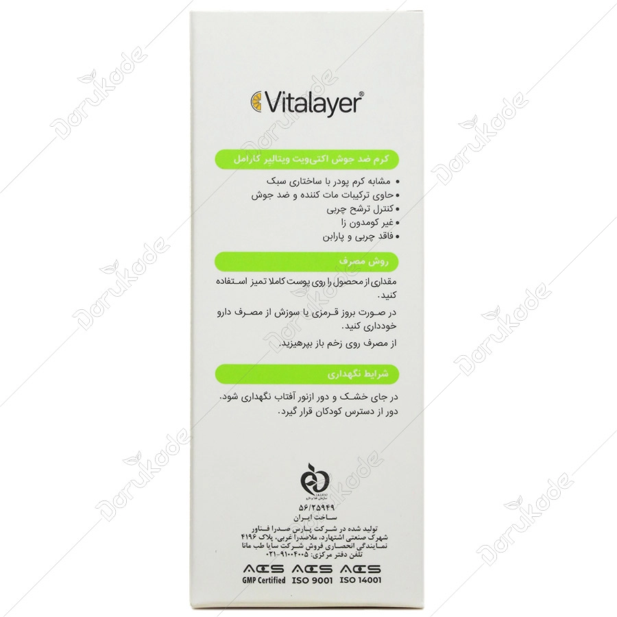 • کرم ضد جوش ویتالیر، کنترل کننده میزان چربی سطح پوست