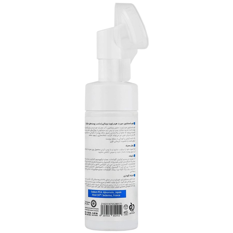 فوم شستشوی صورت هیدراویت حاوی ویتامین C و عصاره جو دو سر برای آبرسانی عمیق پوست است.