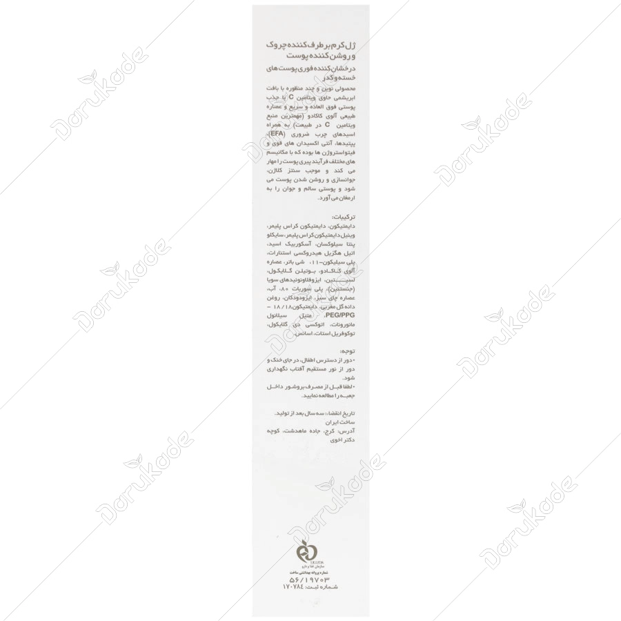 ژل کرم برطرف کننده چروک و روشن کننده پوست حاوی ویتامین C پریم تولید شده در لابراتور دکتر اخوی محصولی نوین و چند منظوره حاوی آسکوربیک اسید خالص، محصور در یک پایه آلی-سیلیکونی با جذب پوستی سریع و فوق العاده و عصاره طبیعی آلوی کاکادو (مهمترین منبع ویتامین C در طبیعت) به همراه اسیدهای چرب ضروری (EFA)، پپتیدها، آنتی اکسیدان های قوی و فیتواستروژن ها می باشد که با مکانیسم های مختلف فرآیند پیری پوست را مهار می کند و موجب سنتز کلاژن، جوانسازی و روشن شدن پوست می شود.