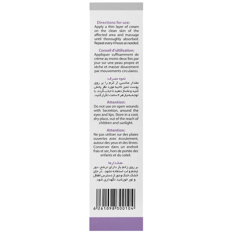 مقدار مناسبی از کرم را بر روی پوست تمیز ناحیه مورد نظر پخش کنید و ماساژ دهید تا جذب گردد. با توجه به نیاز هر 4 ساعت تکرار کنید.
