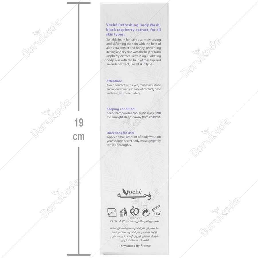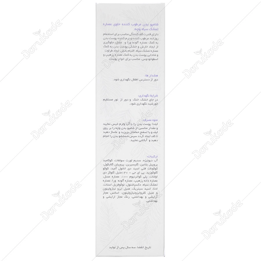 شامپو بدن مرطوب کننده تمشک سیاه وچه مناسب انواع پوست بوده و دارای قدرت کف کنندگی مناسب برای استفاده روزانه است و به کمک عصاره آلوئه ورا و عسل، پوست بدن را مرطوب و نرم میکند. در این محصول از عصاره تمشک سیاه استفاده شده است که علاوه بر خاصیت آنتی رادیکالی خود باعث جلوگیری از ایجاد خارش و خشکی پوست میشود. همچنین عصاره رز وحشی و اسطوخودوس موجود در این محصول التیام بخش بوده و باعث ایجاد طراوت و شادابی پوست میشود.