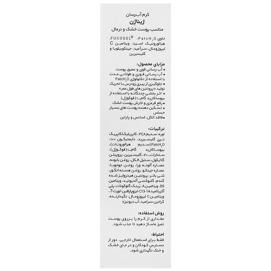 حاوی patc H2O، Fucogel، هیالورونیک اسید، ویتامین C لیپوزومال، سرامید، جینکوبیلوبا و گلیسیرین
