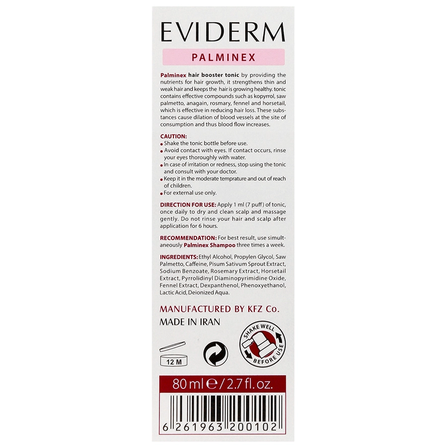 توصیه مهم: جهت حصول نتایج مطلوب، توصیه می گردد همزمان 3 بار در هفته از شامپو پالمینکس اویدرم استفاده نمایید.