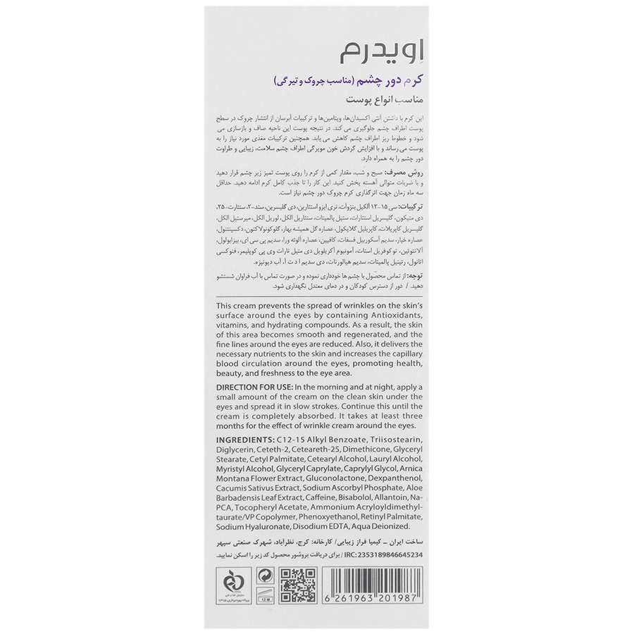 صبح و شب، مقدار از کرم را روی پوست تمیز دور چشم قرار دهید و با ضربات متوالی آهسته پخش کنید. این کار را تا جذب کامل کرم ادامه دهید. حداقل سه ماه زمان جهت اثرگذاری کرم چروک دور چشم نیاز است.