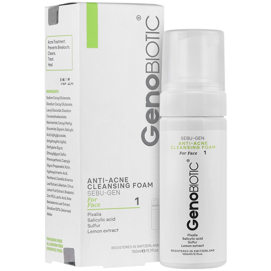 فوم شستشوی صورت ژنوبایوتیک، عضوی از محصولات خانواده سبوژن است. این فوم حاوی ترکیباتی است که چربی، آلودگی های پوستی، تجمع سلول های مرده، مواد آرایشی و باکتری عامل آکنه را در منافذ پوست به خوبی پاکسازی کرده، در نتیجه باعث شستشو و تمیز نگه داشتن پوست می شود. فوم شستشوی صورت همچنین با لایه برداری ملایم پوست را برای جذب ترکیبات و مواد موثره مهیا می سازد. این فوم به گونه ای طراحی شده است که بدون ایجاد خشکی و حساسیت پوستی، زیبایی و پاکی را برای پوست به ارمغان می آورد.