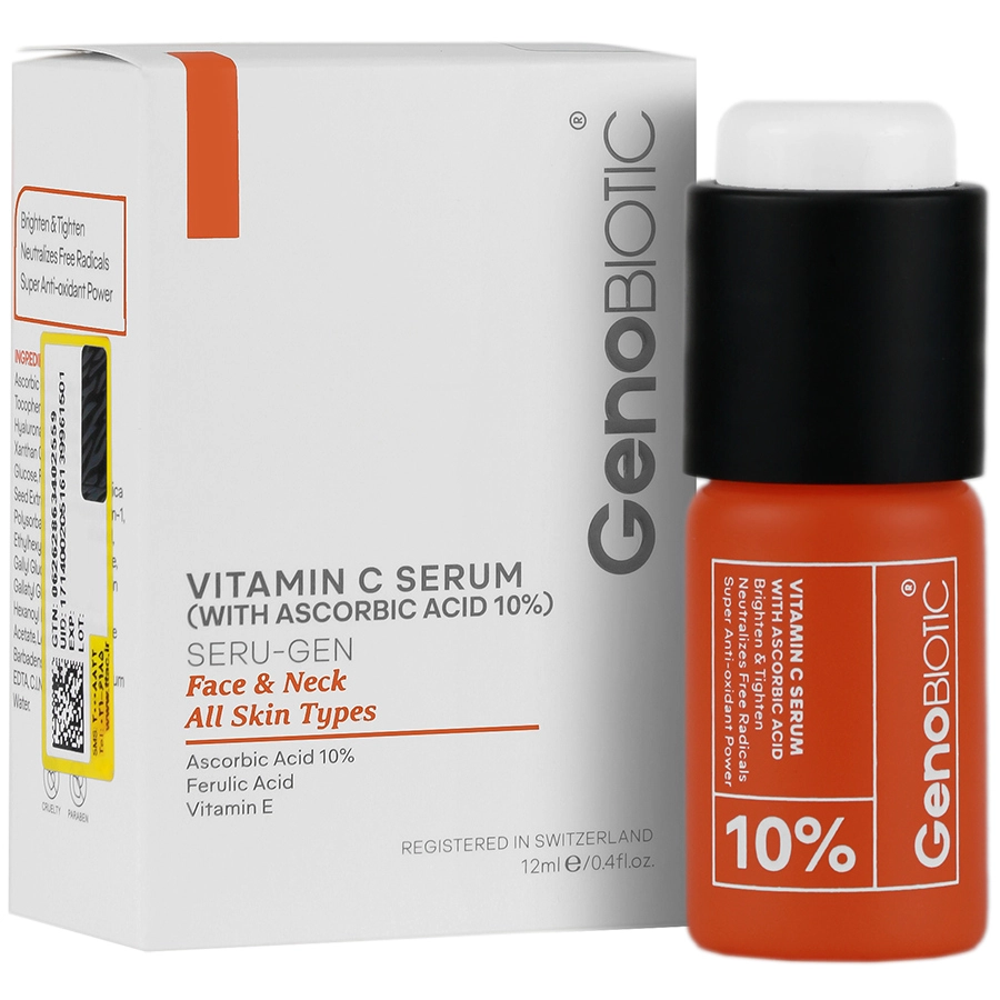 سرم ویتامین سی ژنوبایوتیک حاوی قوی ترین فرم ویتامین C یعنی اسید آسکوربیک است. اسید آسکوربیک، لایه محافظتی آنتی اکسیدانی قوی ای بر روی پوست ایجاد کرده، رنگ پوست را روشن می کند و تولید کلاژن را تحریک می کند تا پوست سفت تر و جوان تر شود. نکته منحصر به فرد این محصول این است که به منظور افزایش اثر و پایداری، آسکوربیک اسید در ساختار این محصول، به شکل پودری فرموله شده است. این ویژگی باعث می شود که بر خلاف اکثر سرم های ویتامین c حاوی آسکوربیک اسید که ناپایدار هستند و با گذشت زمان اثر خود را از دست می دهند، سرم آسکوربیک اسید ژنوبایوتیک دارای ماندگاری و اثر بخشی بسیار بالایی است. این سرم حاوی اسید فرولیک و ویتامین E نیز هست. اسید فرولیک پایداری و کارایی ویتامین C را افزایش می دهد و در عین حال مزایای آنتی اکسیدانی بیشتری نیز برای پوست ایجاد می کند. ویتامین E این اثرات را با محافظت بیشتر از پوست در برابر رادیکال های آزاد، آبرسانی عمیق و افزایش ترمیم پوست تکمیل می کند. این سه ترکیب با هم به طور هم افزایی (Synergism) سلامت پوست را تقویت می کنند.