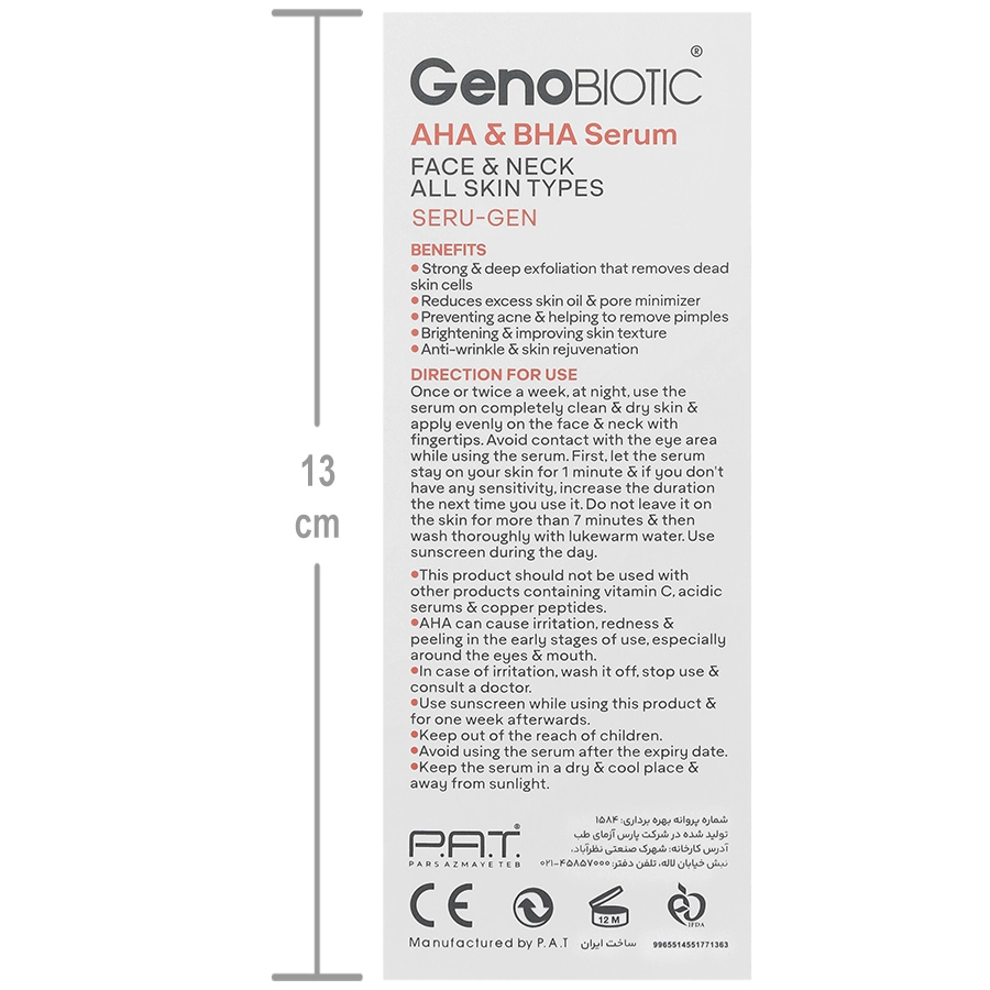سرم آلفا و بتا هیدروکسی اسید (صورت و گردن) ژنوبایوتیک:
