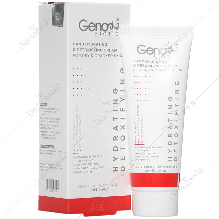 کرم رطوبت رسان و دتوکسیفای کننده دست ژنوبایوتیک، یک رطوبت رسان قوی است که با رطوبت رسانی عمقی به پوست دست شما رطوبت پوست دست را برای مدت طولانی حفظ می کند و این کار را بدون باقی ماندن رد چربی و با جذب سریع بر روی پوست دست تان انجام میدهد. این کرم مخصوص پوست های خشک و آتوپیک طراحی شده است و به مرور استفاده باعث ترمیم زخم ها و ترک های ناشی از خشکی پوست می شود و از بروز چین و چروک های زودرس جلوگیری می کند. از طرفی دیگر این محصول یک لایه محافظتی بر روی پوست ایجاد کرده که مانع تاثیر گذاری امواج مضر محیطی در طول شب و روز بر روی پوست شده و با خاصیت آنتی اکسیدانی و دتوکسیفای کنندگی، سلامت پوست دست را به ارمغان می آورد.