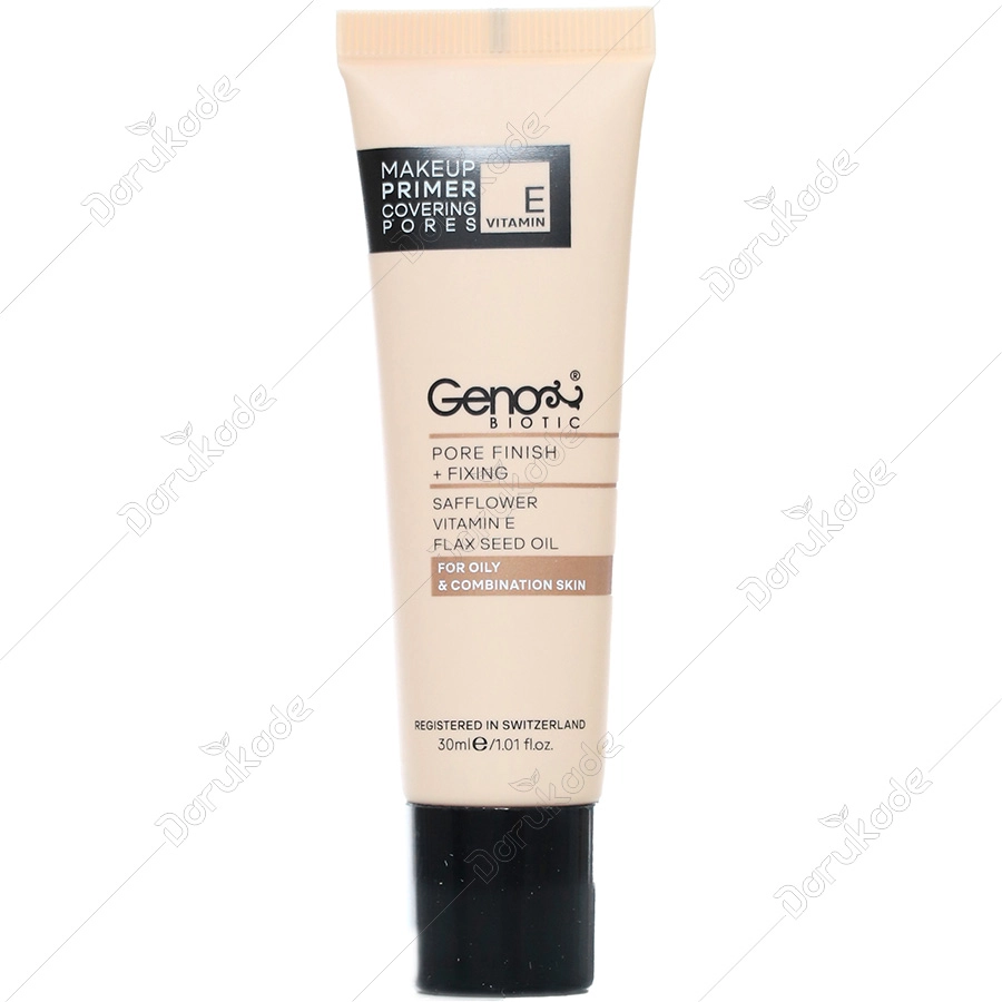 مقدار کمی ازپرایمر صورت ژنوبایوتیک را برداشته و آن را با نوک انگشت و با حرکت نرم و چرخشی به طرف بیرون صورت خود بمالید. بگذارید پرایمر کاملا خشک شود.