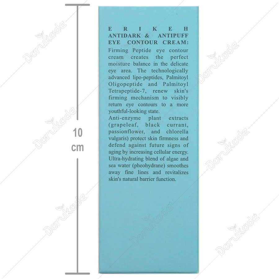 کبودی و تورم زیر چشم چهره را پیر و خسته به نظر می رساند. کرم ضد پف و کبودی دور چشم اریکه بوسیله خصوصیات زیر این دو مشکل را برطرف کرده ، چهره را جوان و شاداب می کند. ترکیبات موثر با منشاء گیاهی موجود در این کرم نفوذپذیری مویرگی را کاهش داده ، نشت مایعات را به فضای بین سلولی محدود کرده و در نتیجه ، تورم را کاهش می دهد. این محصول حاوی ترکیبات جدید گیاهی است که خاصیت روشن کنندگی داشته و کبودی دور چشم را به نحو موثری کاهش می دهد. ترکیبات ضد التهاب موجود در این کرم التهاب موجود را از بین برده ، خستگی چشمان شما را برطرف می کند. مواد محرک تولید کلاژن و الاستین موجود در این محصول ، استحکام پوست این ناحیه را افزایش داده ، به آن قوام می بخشد و از ایجاد چین و چروک پیشگیری می کند. مشتقات ویتامین E موجود در این کرم آسیب های محیطی را خنثی می کند. چربیهای ضروری پوست موجود در این محصول ، مشکل عدم تولید چربی در پوست دور چشم را برطرف و آنرا نرم و لطیف می کند. خواص ضد تورم این کرم ، ورم اطراف چشم ها ، که از عوامل اصلی خسته و پیرتر به نظر رسیدن چهره است را از بین می برد. پروتئین های موجود در این محصول منبع سرشاری از اسیدهای آمینه مورد نیاز سلولهای پوست برای بازسازی هستند.