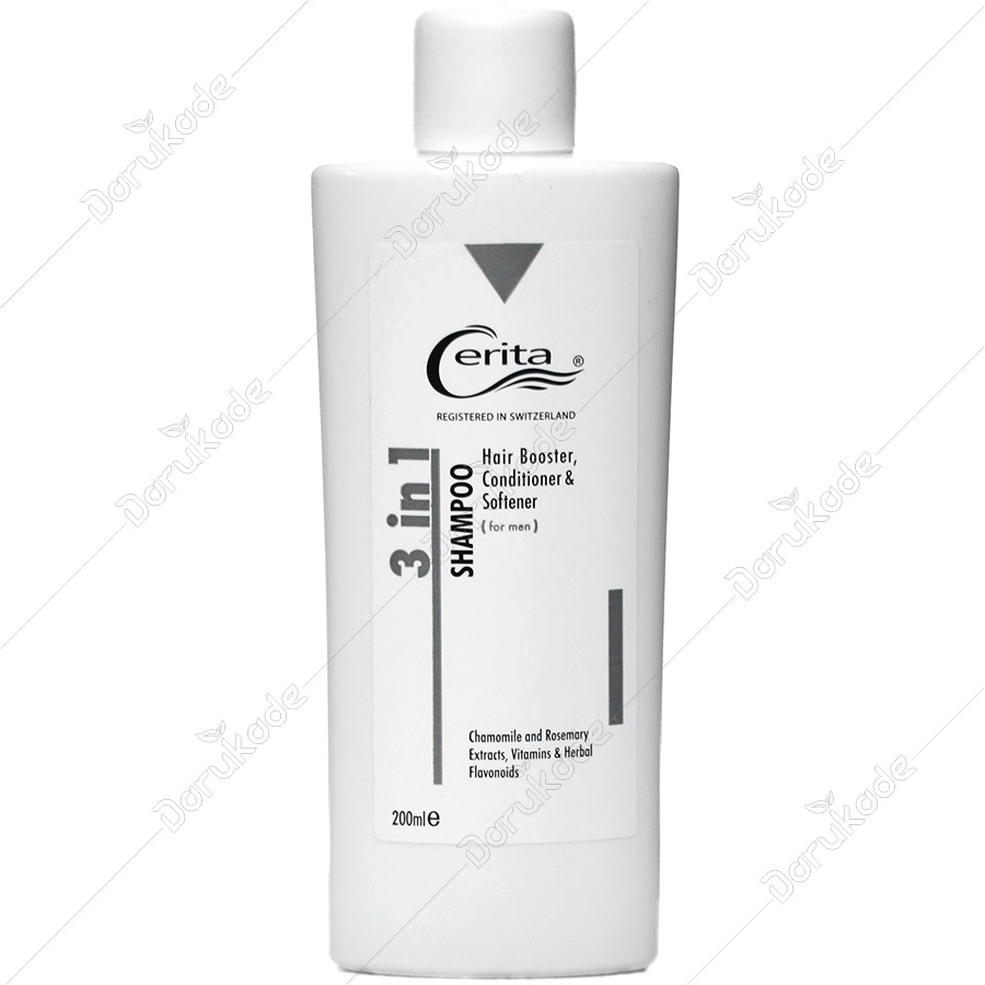 شامپو 3 در 1 سریتا (مناسب آقایان) دارای ترکیب ویژه ای از عصاره های گیاهی، ویتامین ها و آنتی اکسیدان طبیعی، با رایحه ای دلپذیر، مواد مورد نیاز جهت رشد مو را در اختیار فولیکول مو قرار داده و باعث سلامت ریشه مو، لطافت، زیبایی، درخشندگی و حالت پذیری تارهای مو می گردد.