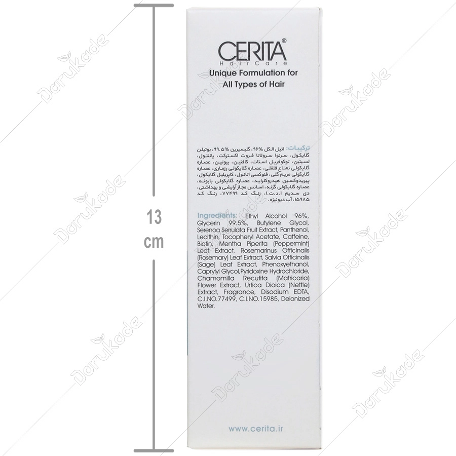 روزانه یکبار، 1-2 سی سی (هر سی سی 7 پاف اسپری) از محلول سریتا را در نواحی ریزش مو، روی پوست سر اسپری نمایید. سپس با نوک انگشتان با حرکت ملایم و بصورت دورانی، کف سر را به خوبی ماساژ دهید. برای دستیابی به نتایج بهتر از شامپوهای ضد ریزش سریتا (شامپو کافئین) توصیه می شود.