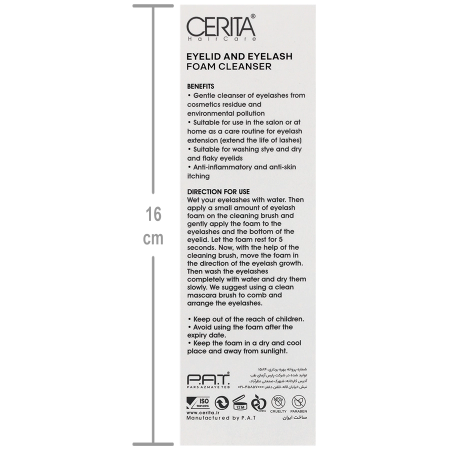 فوم شستشوی پلک و مژه سریتا به خوبی ذرات معلق، آلودگی و آرایش را از ریشه های مژه و پایه ی پلک ها به طور کامل پاکسازی کرده و جریان مجاری پلکی را تسهیل می کند و از ایجاد التهابات و عفونت های چشمی جلوگیری می کند. این محصول حاوی ملایم ترین ترکیبات برای ناحیه حساس چشم است مثل روغن درخت چای که قدرت پاکسازی پلک و مژه ها از انواع میکروب ها و باکتری ها و بخصوص عارضه گل مژه را دارد. علاوه بر این بابونه ی استفاده شده در این محصول هرگونه التهاب و قرمزی را از بین می برد. PH این محصول در محدوده pH چشم، یعنی 5.5 تا 7 است که سبب کمترین تحریک در چشم خواهد شد. فوم شستشوی پلک و مژه فاقد پارابن، سولفات و اسانس است. این محصول بهترین انتخاب برای شستشوی اکستنشن مژه و رفع گل مژه است.